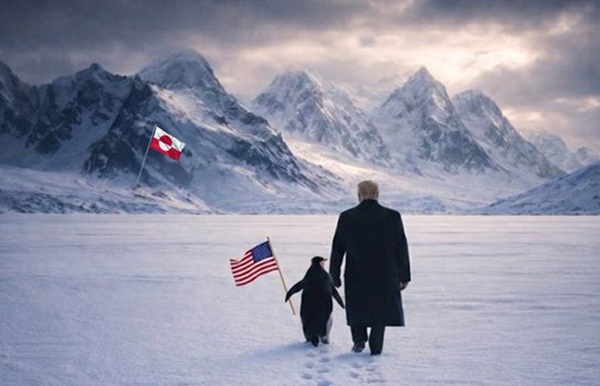 There are no penguins in Greenland. All Penguins live in the southern hemisphere except one species from the Galapagos Islands.